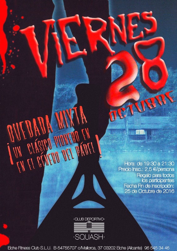 Próximo Viernes 28 de Octubre, Quedada Mixta de Pádel especial Halloween.