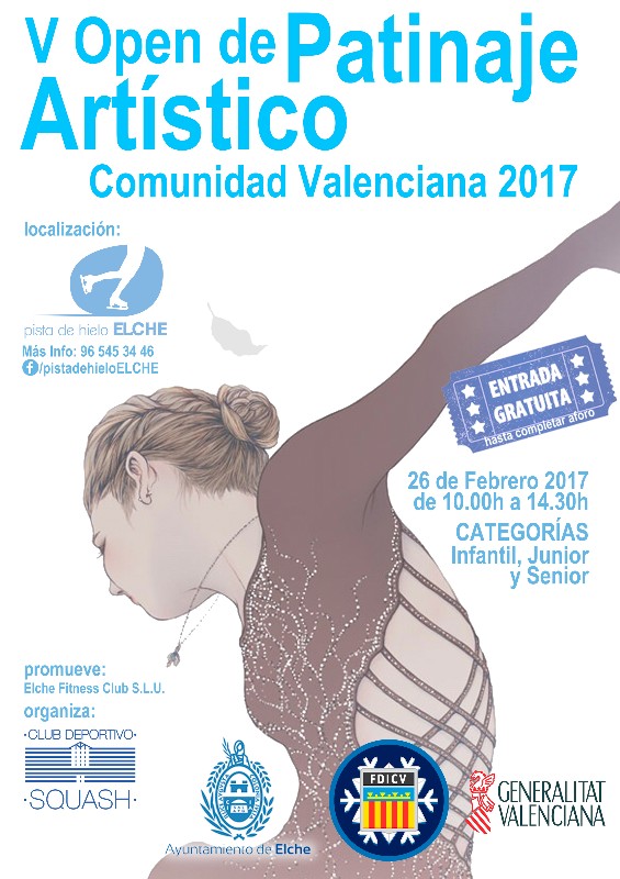 Te esperamos el próximo domingo 26 de 10:00h. 14:30h. en la Pista de Hielo Elche para disfrutar del mejor patinaje artístico en el V Open de Patinaje Artístico sobre Hielo de la Comunidad Valenciana.