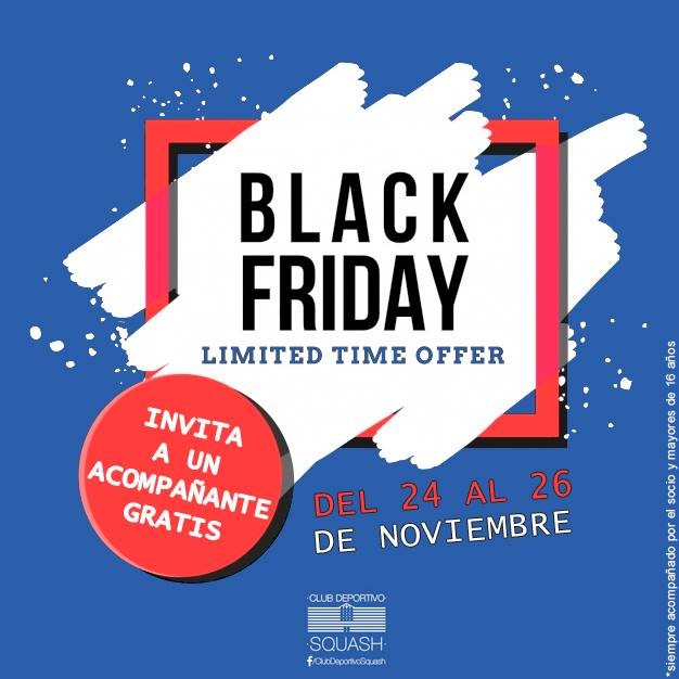 Sí eres Soci@, invita a quien tú quieras y disfruta del #BlackFridayTraining en Club Deportivo Squash.