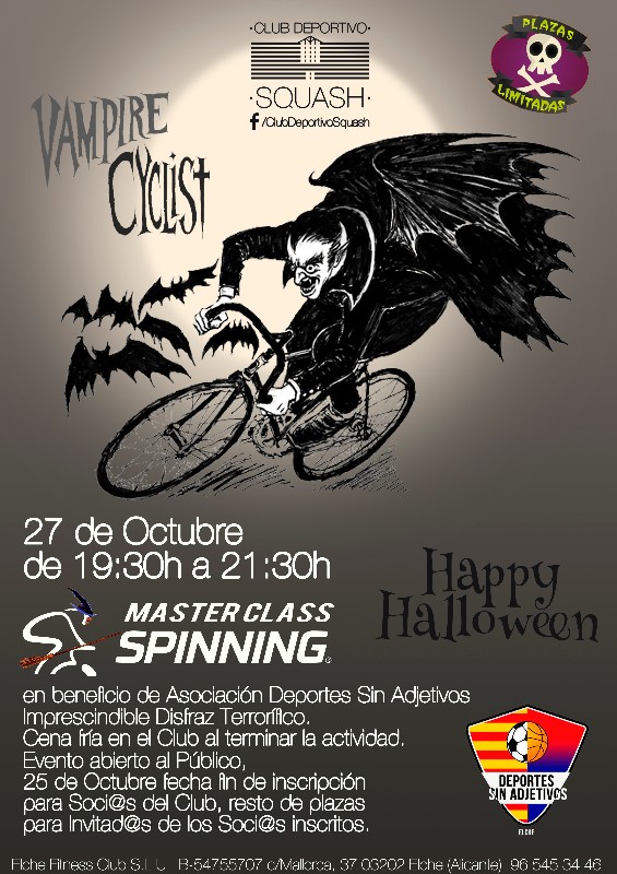 Próximo Viernes 27 de Octubre, Master Class Spinning especial #Halloween en benefício de Club Deportivo Deportes SIN Adjetivos.