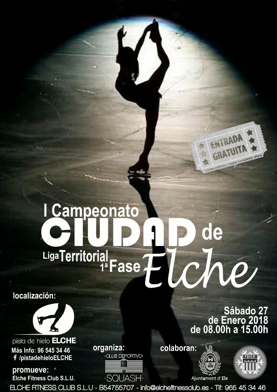En Pista de Hielo Elche estamos orgullos de anunciar que seremos sede el próximo Sábado 27 de Enero 2018 de 08.00h a 15.00h del Primer Campeonato Ciudad de Elche - Liga Territorial Primera Fase.