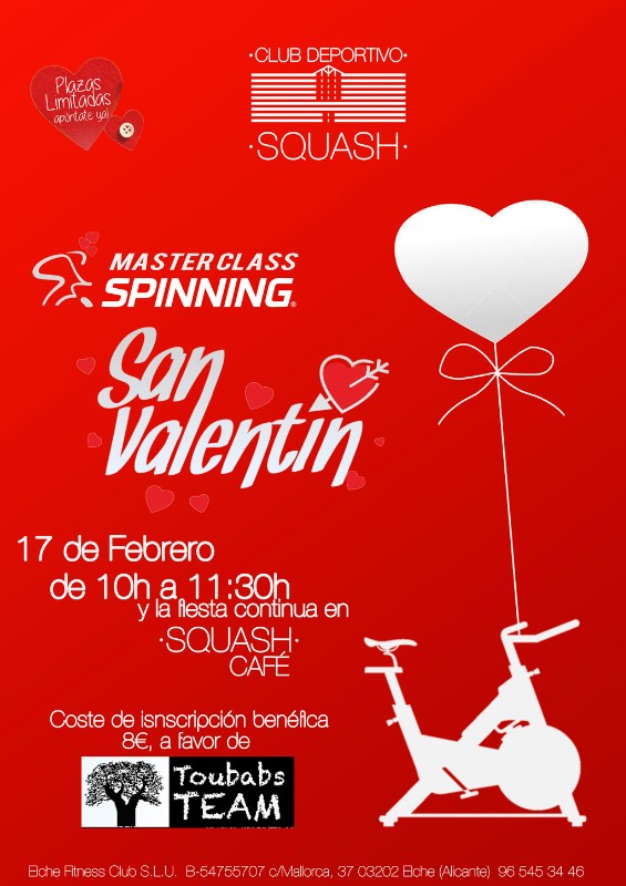 Próximo Sábado 17 de Febrero, Master Class Spinning especial #SanValentín en benefício de Toubabs Team.