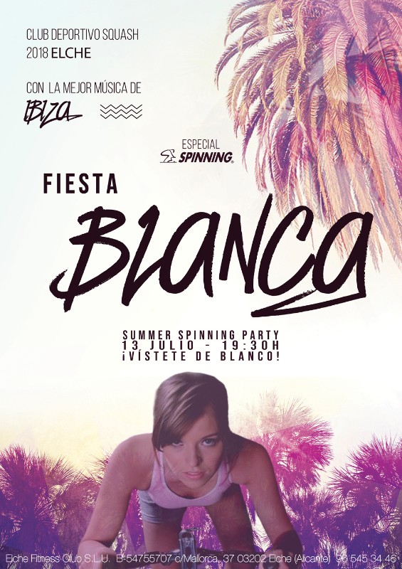 El próximo Viernes 13 de Julio a las 19:30h, con la mejor música de Ibiza, #ClaseEspecial Spinning #FiestaBlanca en Club Deportivo Squash.