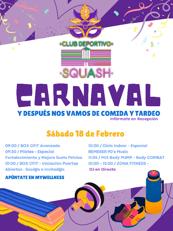 Celebra el Carnaval más activo en Club Deportivo Squash.